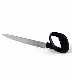 Vitility Ergonomisk Kødkniv gør det nemt at skære kød med præcision uden at belaste håndleddet. Det vinklede greb giver bedre kontrol og kræver minimal styrke. Anvendes ved gigt, nedsat greb eller svage led. Skarpt blad i rustfrit stål. Sikker, komfortabel og tåler opvaskemaskine.