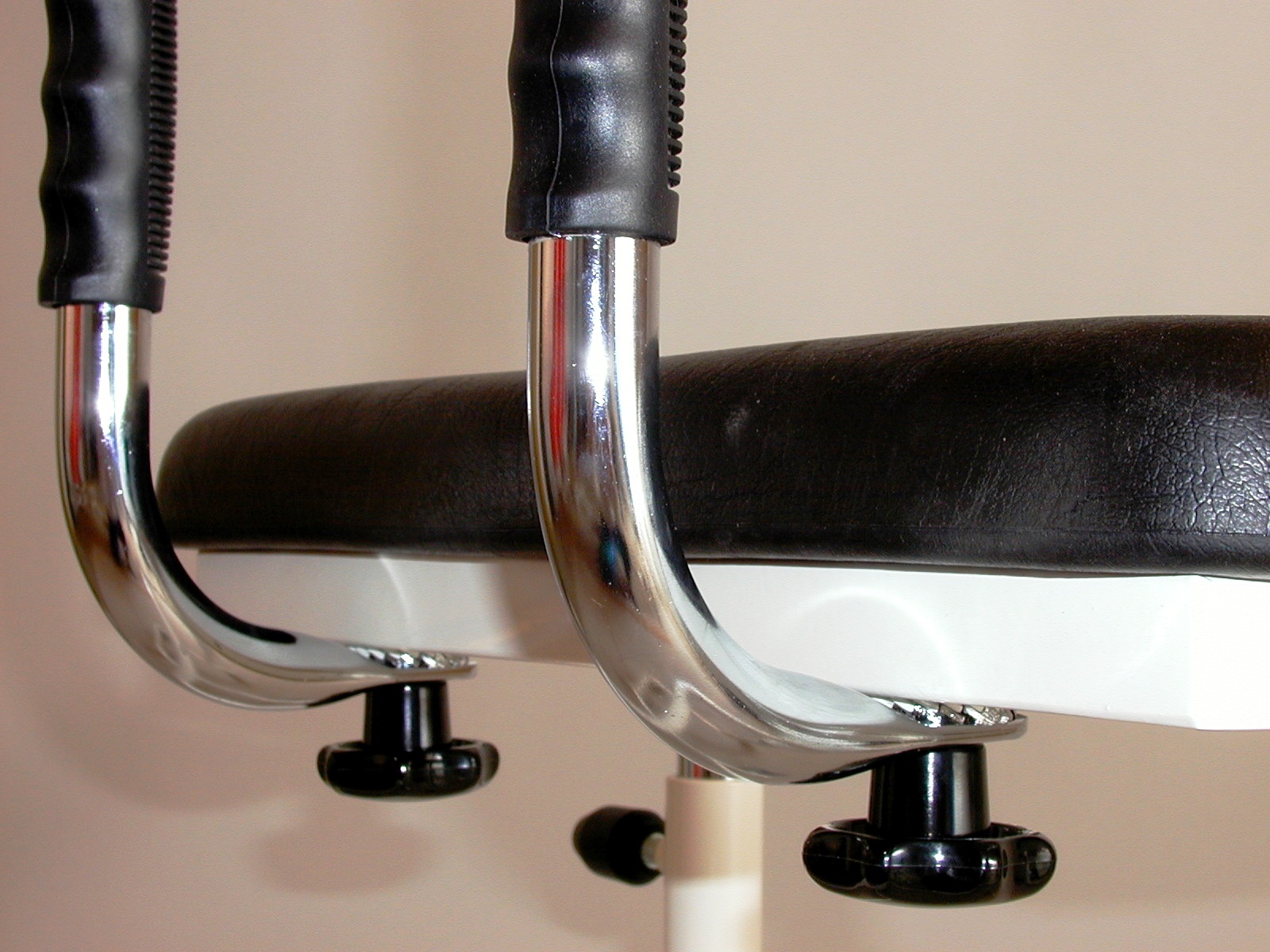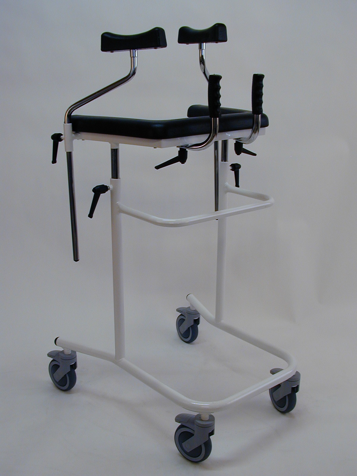 REHA walking frames with height adjustable upper section with PUR forearm cushion to support the user. Four available models: REHA 1, 2, 3, and 4.
