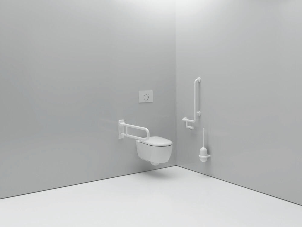 Polyamide, high gloss, Horizontal length 300 mm, vertical length 600 mm, diameter 33 mm, Can be mounted on the left and right, tested up to 200 kg when used with HEWI fixing material, Recommended maximum weight of the user: 150 kg.