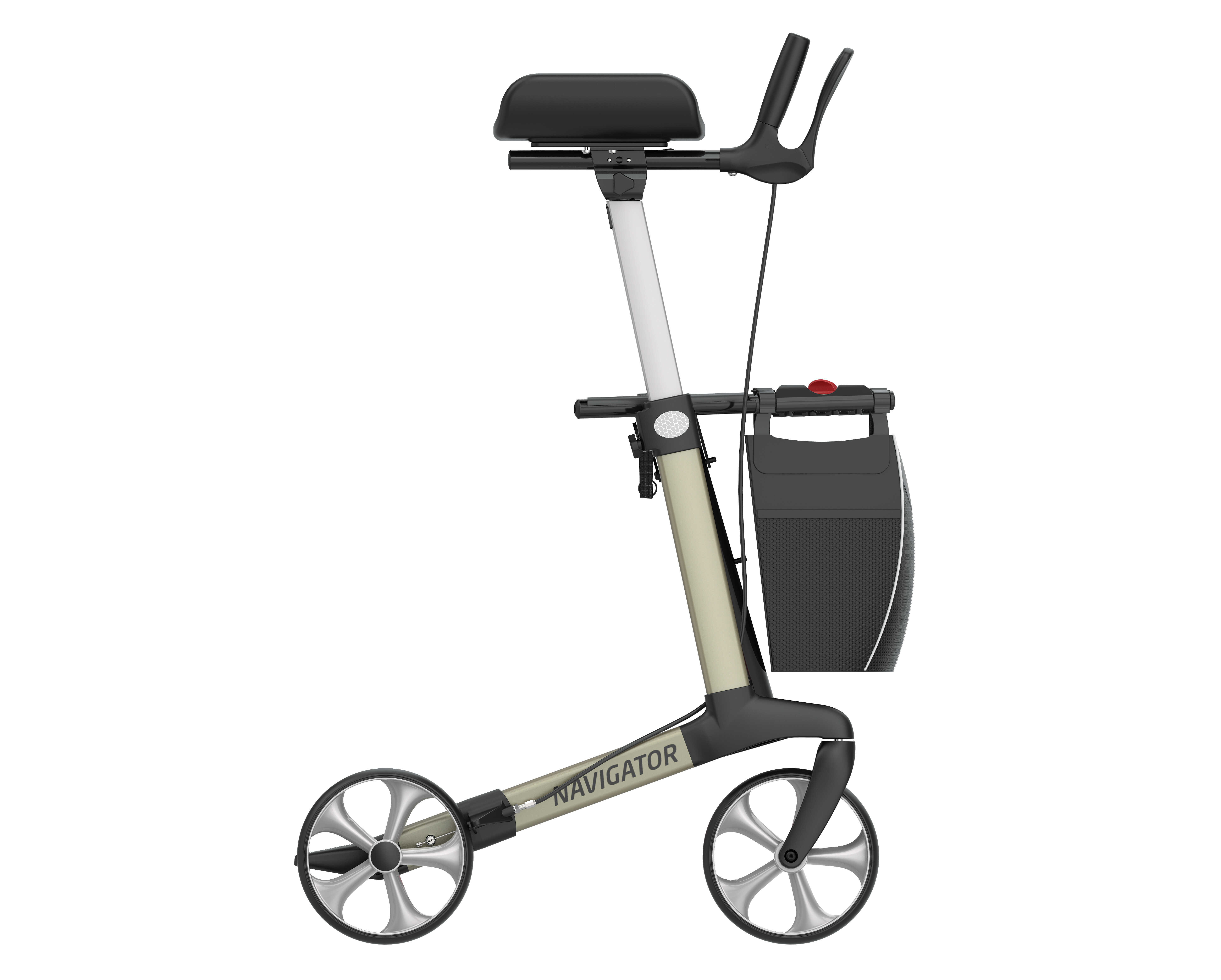NAVIGATOR is designed for users with arthritis and/or limited function of the arms and hands. The rollator has rotatable forearm supports for optimal comfort. Adjustable handles, a carrying function and practical accessories make this rollator a companion indoors and outdoors. Available with TPE or PU shock-absorbing wheels.