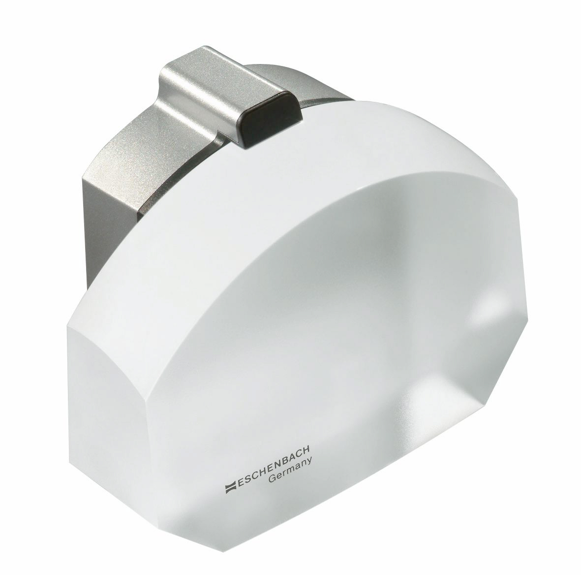 Magnifying block with integrated light and two magnification levels. The angled view supports ergonomic reading posture. Light color can be set to warm white, neutral white or cool white. Brightness level adjustable to 50, 75 or 100 percent.
