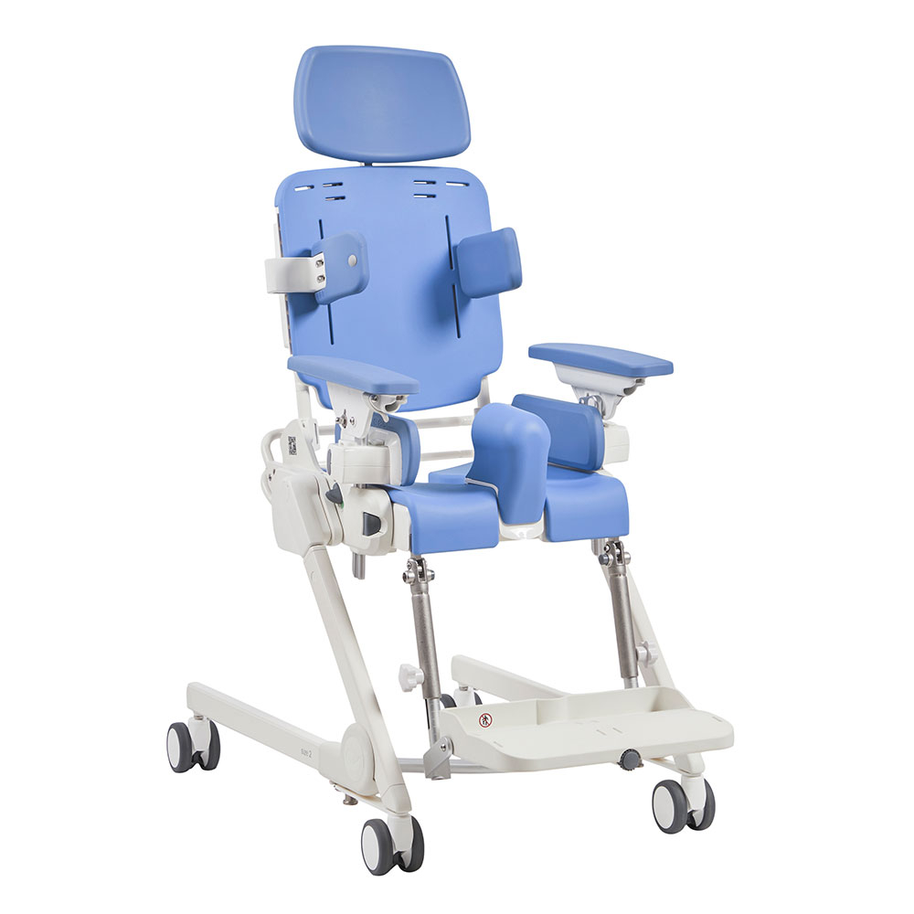 R82 Flamingo Curo toileting and bathing chair on Compact frame