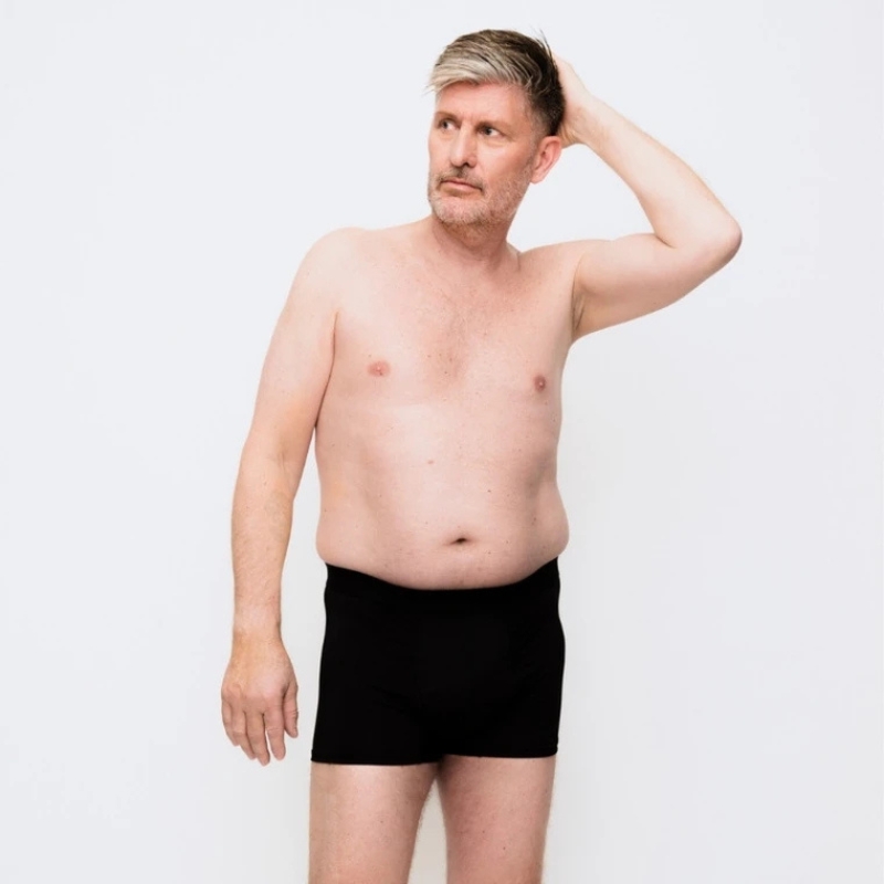 Incontinence boxer shorts with a 4-layer absorbent front pad, capacity up to 90 ml of urine. Made from OEKO-TEX-certified material with spacious front design. Machine washable at 60 degrees. Designed to resemble regular boxer shorts with focus on function and discretion.