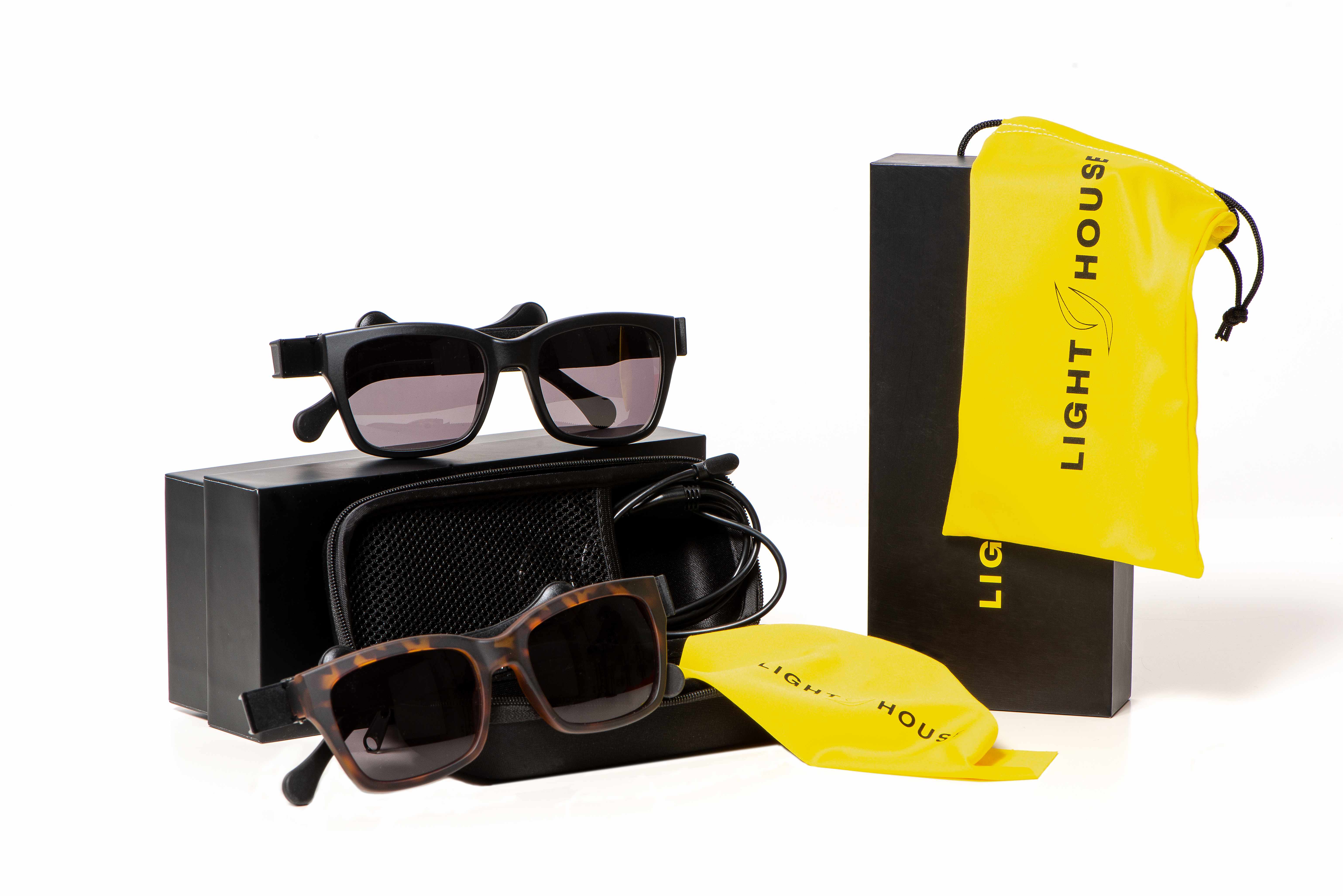 The TAMI glasses have a sensor in each temple that vibrates when you are close to something. This way, TAMI is an addition to The White Cane, as it detects obstacles at head height. They come in different designs. You can have your own prescription glasses fitted by your optician. Rechargeable with the included magnetic charging cable. Weighs 60 g.