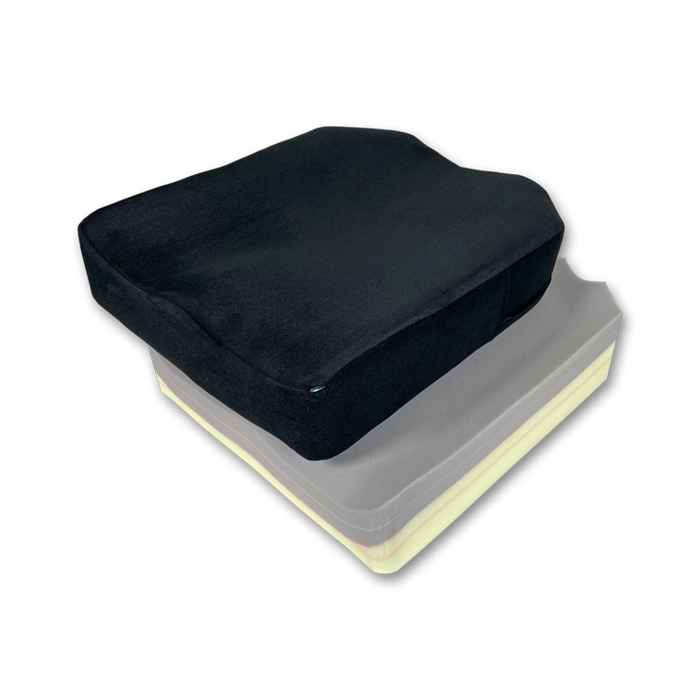Soft, comfortable, and pressure-distributing seat cushion for users who are sensitive to pressure and/or pain, or who seek a high level of comfort.