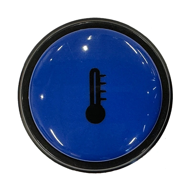 Indoor thermometer and hygrometer in a tabletop design with a large button for stable placement. A short press displays the temperature, while a long press shows the humidity. The device speaks Danish and is easy to use with simple setup. Uses 2 AAA batteries (user-replaceable)