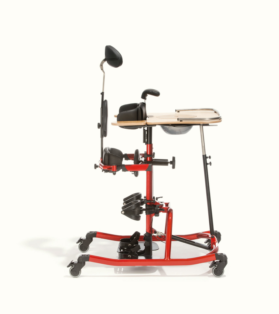 Tim er en ståtræner, der styrker balance, muskler og blodcirkulation. Justerbar støtte i højde, dybde og vinkel giver sikker træning, mens bækken-, bryst- og knæstøtter sikrer korrekt position. Vippefunktion og justerbar fodplade øger fleksibiliteten, og hjul med bremse giver tryghed.