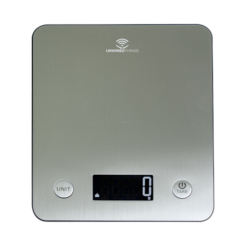Digital vægt m. tara-funktion. Kapacitet: 5 kg. Rustfri stål. Mål: 218x188x18 mm. Vægt: 376 g. Præcision: 1 g/0,1 oz.