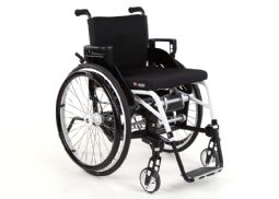 Kørestol med hejsefunktion. Løfter brugeren op i en højde svarende til 175 cm. Velegnet i privaten såvel som på jobbet. Det justerbare sæde hejses (op til 30 cm) og sænkes ved hjælp af letbetjent gashåndtag (benene forbliver vandret). Leveres skræddersyet med rammedimensioner og udstyr tilpasset den enkelte bruger. Fås også med en elektrisk hejs.