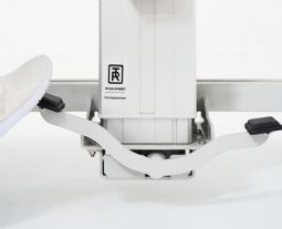 Med den sideplacerede hæve-/sænkesøjle kan lejet helt overlappe sengen for en sikker/nem forflytning af patienten. Har afløb i både hoved- og fodende. Den ideelle ergonomiske løsning t/forebyggelse af arbejdsskader/minimering af statiske belastninger. Trendelenburg-tiltjustering, Sidestøtter er justérbare og fleksible, Med nødstop