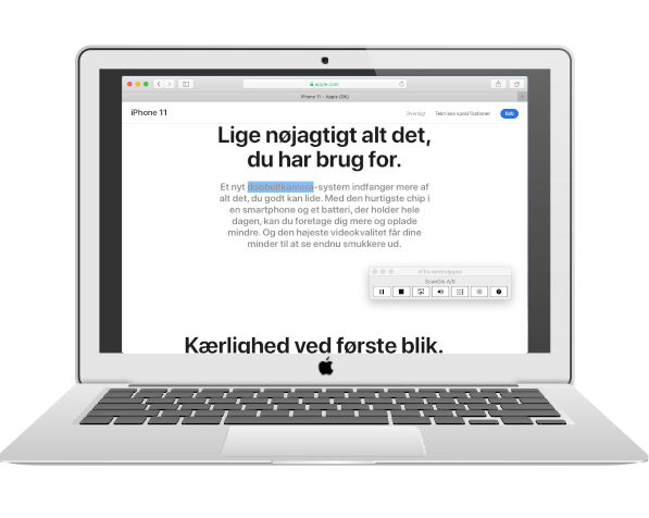V-Mac viser både ordforslag og muliggør oplæsning af tekster med ordmarkering på en Mac. Oplæsning på mere end 20 sprog. Scanning og OCR behandling af trykt tekst, billeder eller PDF. Ordblind eller behov for læse-/skrivestøtte. Altid gratis opdateringer.