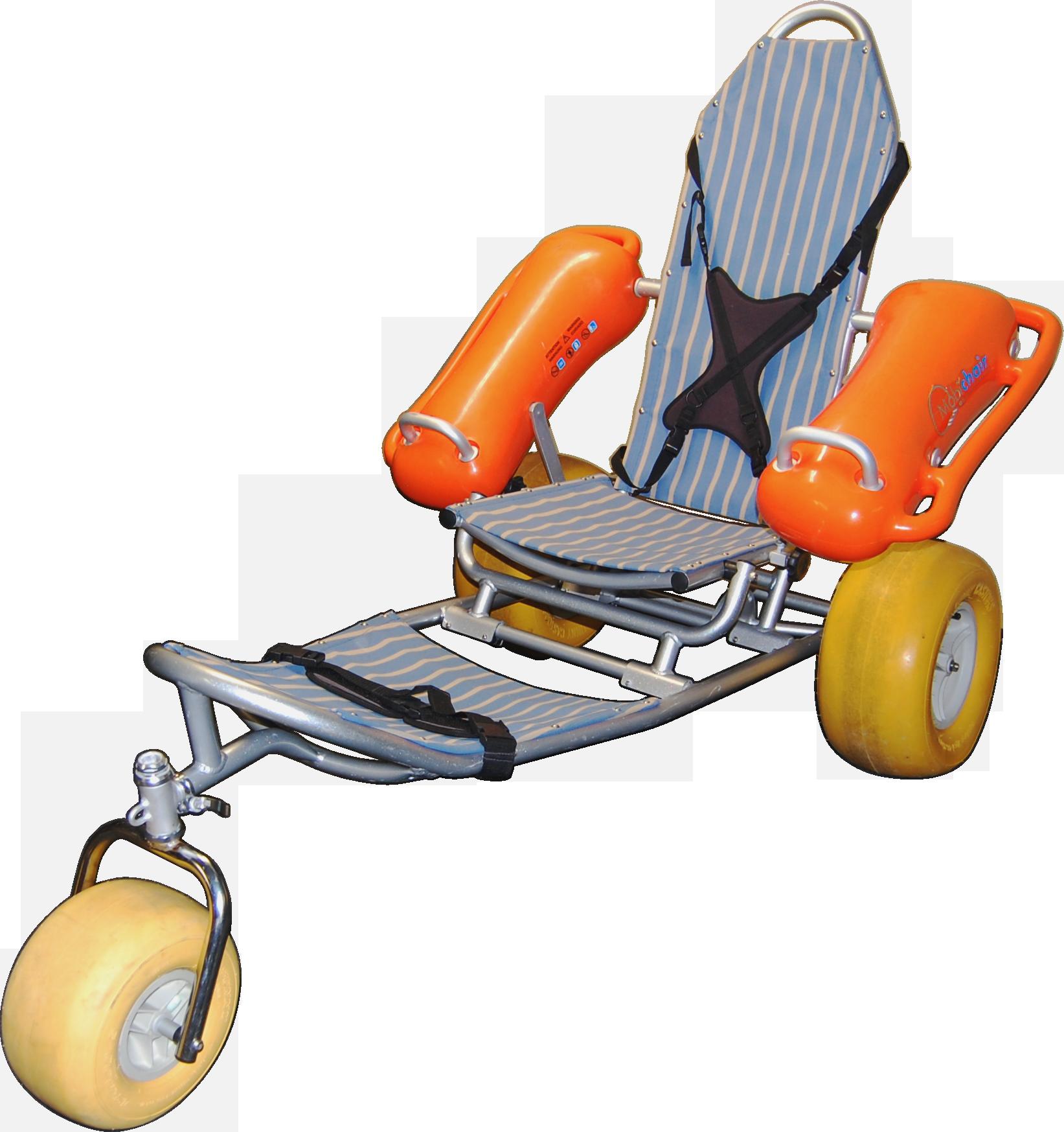 Mobi-Chair Flydende strandkørestol er velegnet til brug på stranden og i svømmebassiner.