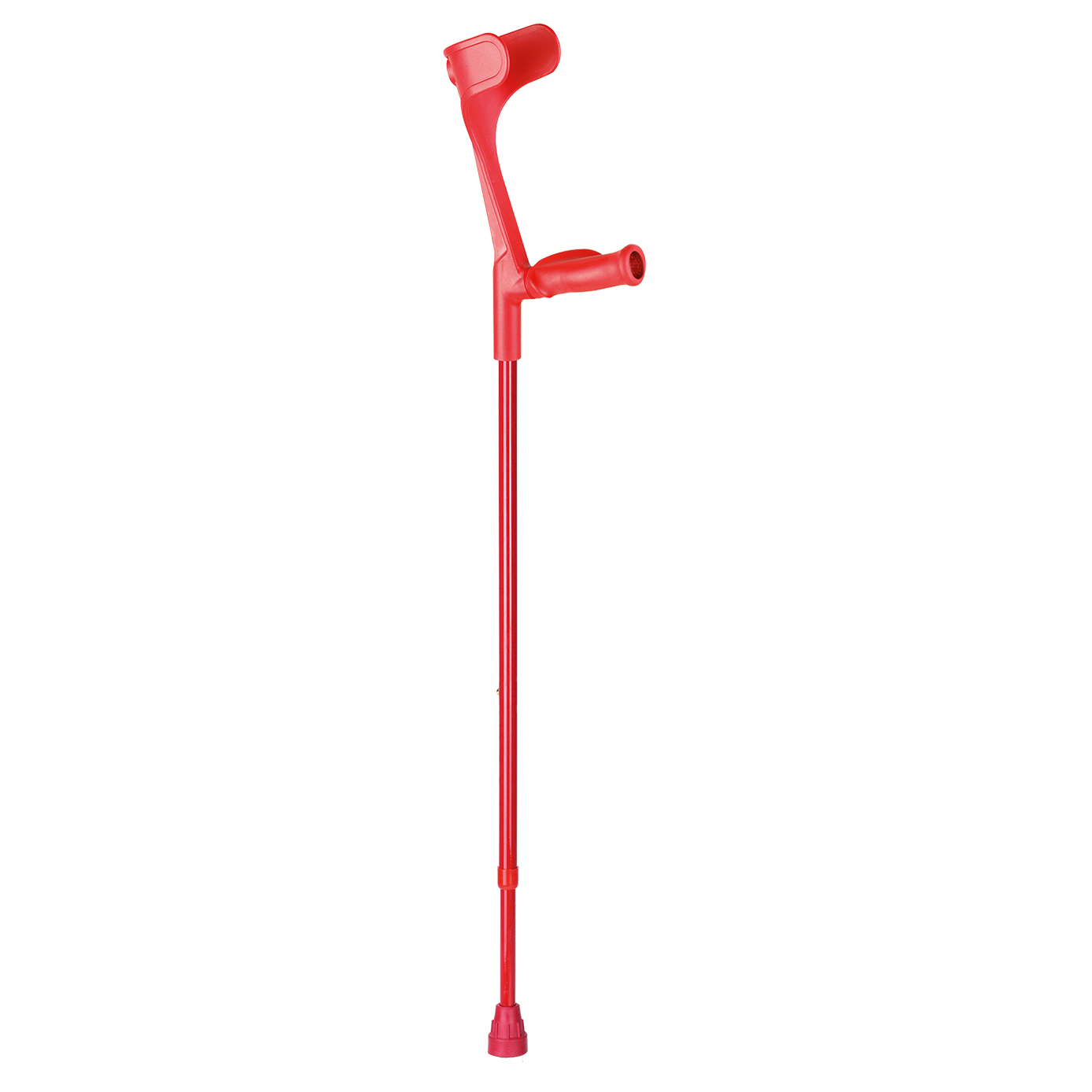 Justerbar krykke med ergonomisk, blødt softgreb til enten højre eller venstre hånd. Maksimal brugervægt: 140 kg. Højdejustering fra gulv til håndtag: 76-96 cm. Håndtaget er anatomisk udformet for at aflaste hænder og arme.