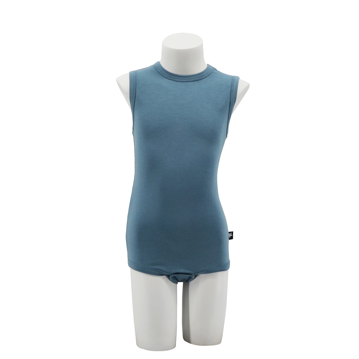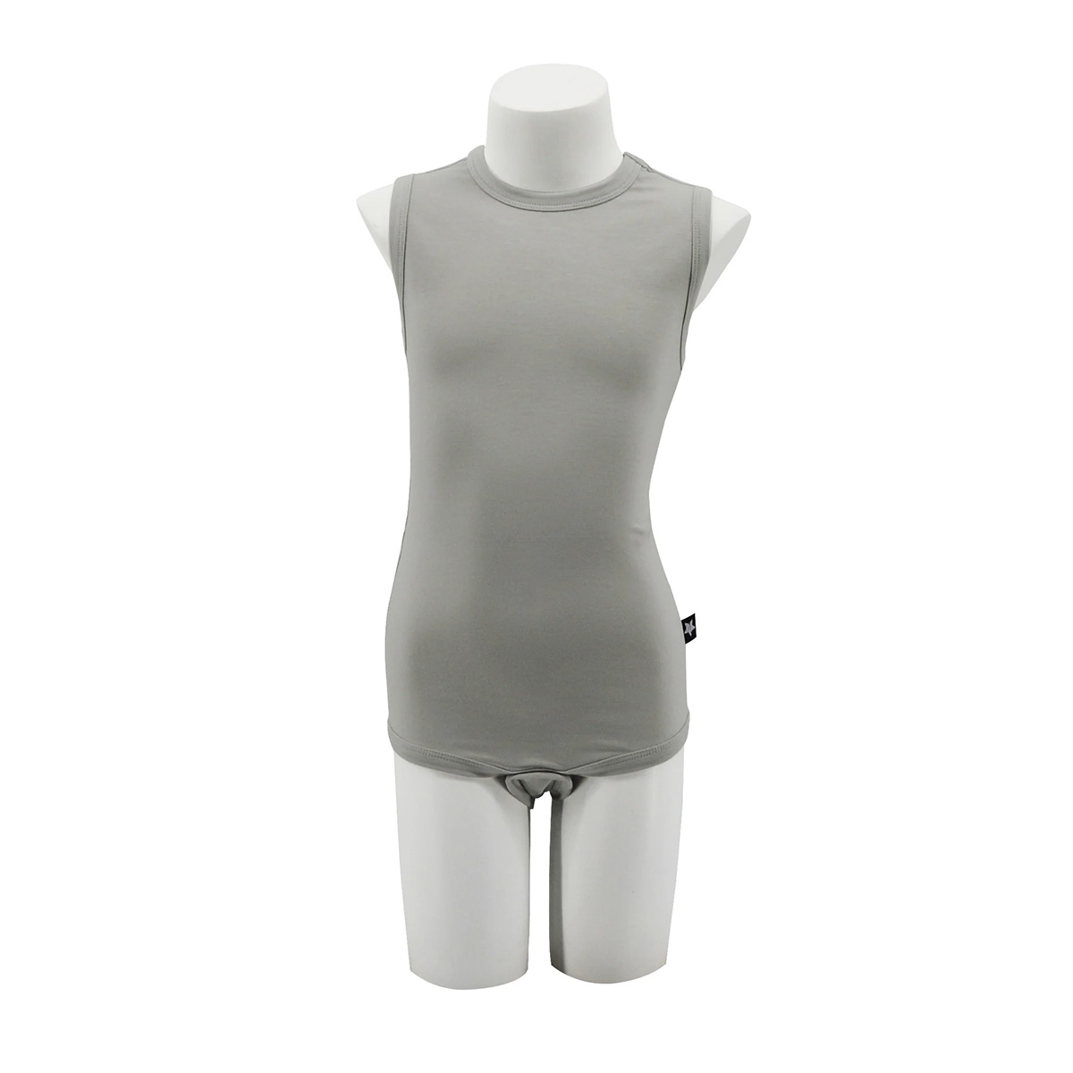 Blød og åndbar bodystocking til børn i temperaturregulerende bambusviskose uden ærmer. Komfortabel mod huden, hurtigttørrende og fremstillet af økologisk dyrket bambus. Trykknapper forneden gør skift nemt, og designet hjælper med at forhindre utilsigtet afklædning i hverdagen.