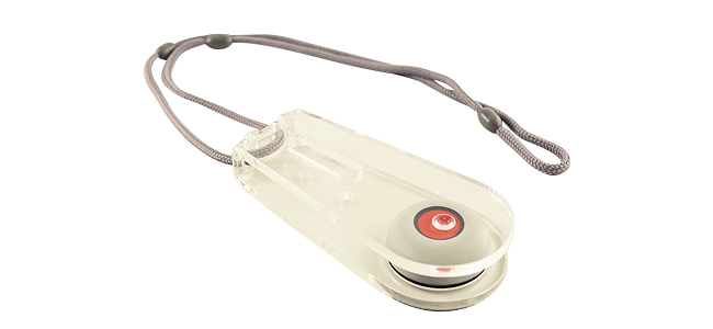 Lettryksholderen er til alarmsendere, når brugeren ikke kan aktivere alarmknappen med en finger.