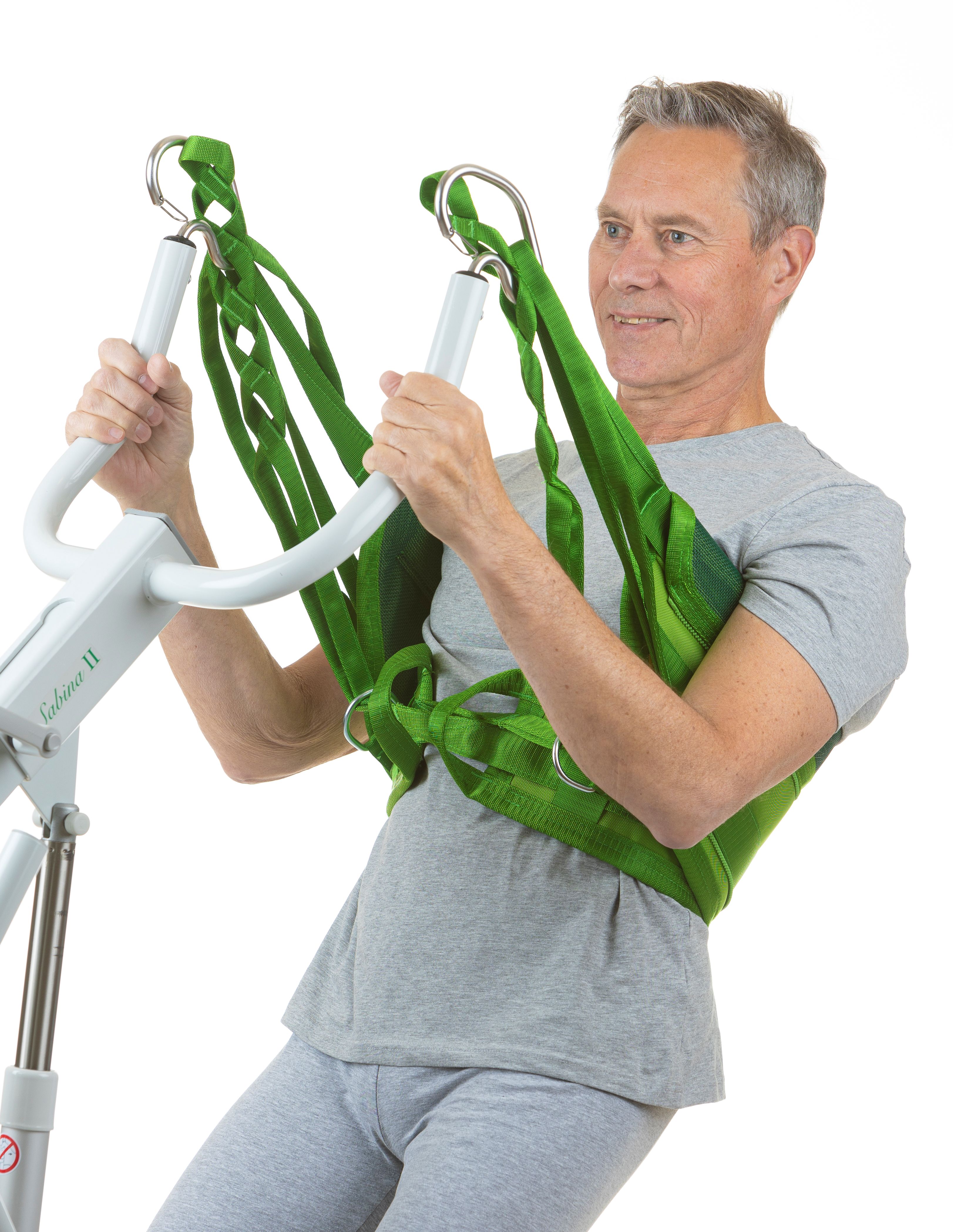 Vest som støtter i ryggen og under armene, den er let at bruge og tilpasse til den enkelte bruger. Et bælte holder vesten på plads mod kroppen i starten af bevægelsen. Efterspændes bæltet under oprejsning, skal det løsnes igen under nedsænkning.