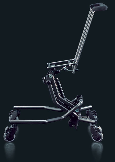 Hi-low chassis with angle adjustment for tilt in space. All adjustments can be made safely with the child in the seat.