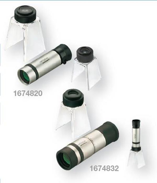 Dual instrument for 3 uses: Stand with magnifier yielding 3x magnifiaction, hand telescope with 8x magnification Stacked on top of each other, they form a microscope with 25x magnification.