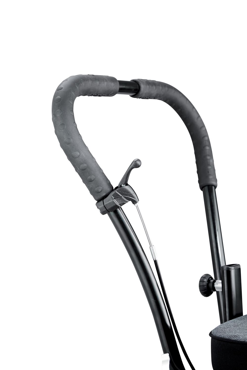 Wombat Living size 3 with power operated height adjustment comes as standard with a black frame and is supplied without cushions, which are ordered separately, depending on whether you want a standard or comfort cushion. The chair is equipped as standard with a push brace and 100 mm castors with a central brake.