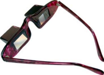Prism spectacles with a 90 degree refraction. Enables user to watch television or read while lying flat. May be worn over ordinary spectacles.