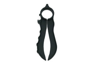Opener to smaller screw caps and cans with rings. The handle has grooves for fingers, which gives a good grips. Not dishwasher safe.