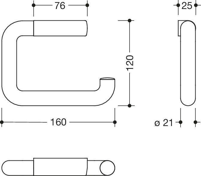 right-angled U-shaped holder, anti-theft protection through concealed screw fixing, 160 mm wide and 120 mm high, rail diameter 21 mm, made of high-quality polyamide according to HEWI colour chart, including non-corrosive HEWI fixing material.