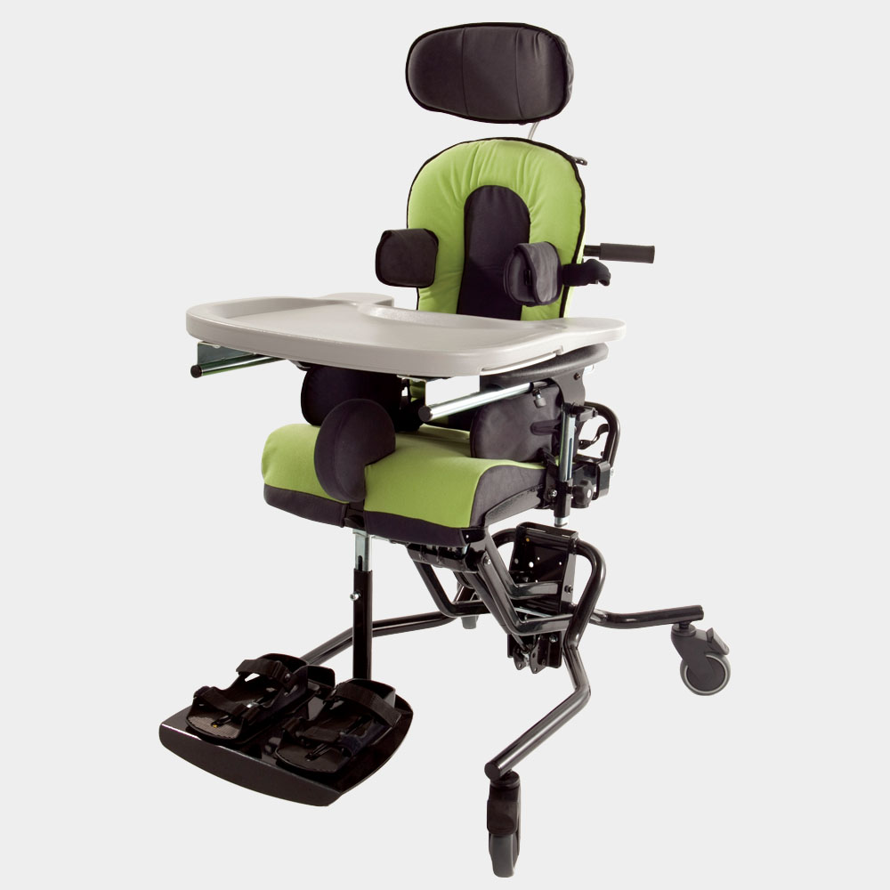 Working seat, available in 3 sizes and is easily adjustable for children and young adjults with moderate needs who require stability of pelvis and feet. Allows optimal comfort, function and stability in everyday activities. Easy to adjust as the child grows. The hi-low chassis is height adjustable with a gas spring/ hydraulically.
