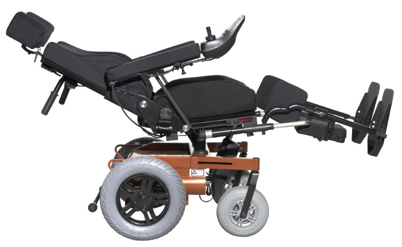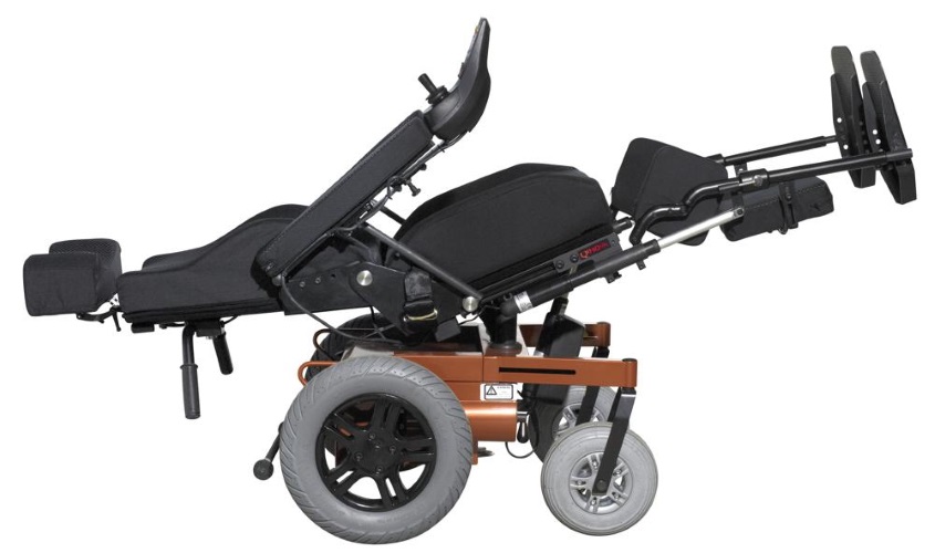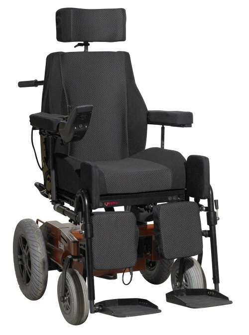 Power Comfort Chair, Rear wheel drive, with power operated tilt and recline, Swingaway legrests. Manual elevation. Wheels in size 10, 12, and 14 inches with Flexel.