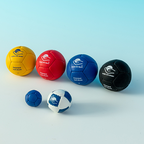 Petanque Superior, 12 balls set. Size of balls: 8,5 cm. Weight of balls: appr. 300 grams. The balls are handsewn from the finest durable PU-leather and filled with plastic granulate. One set contains 3 red, 3 blue, 3 black and 3 yellow soft balls, plus 2 small bright coloured target balls. All packed in a nylon bag.