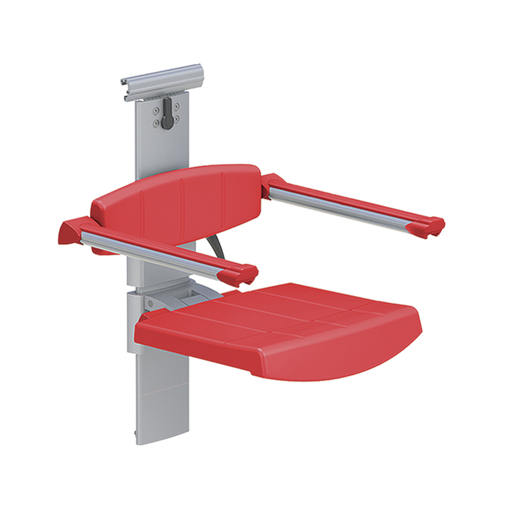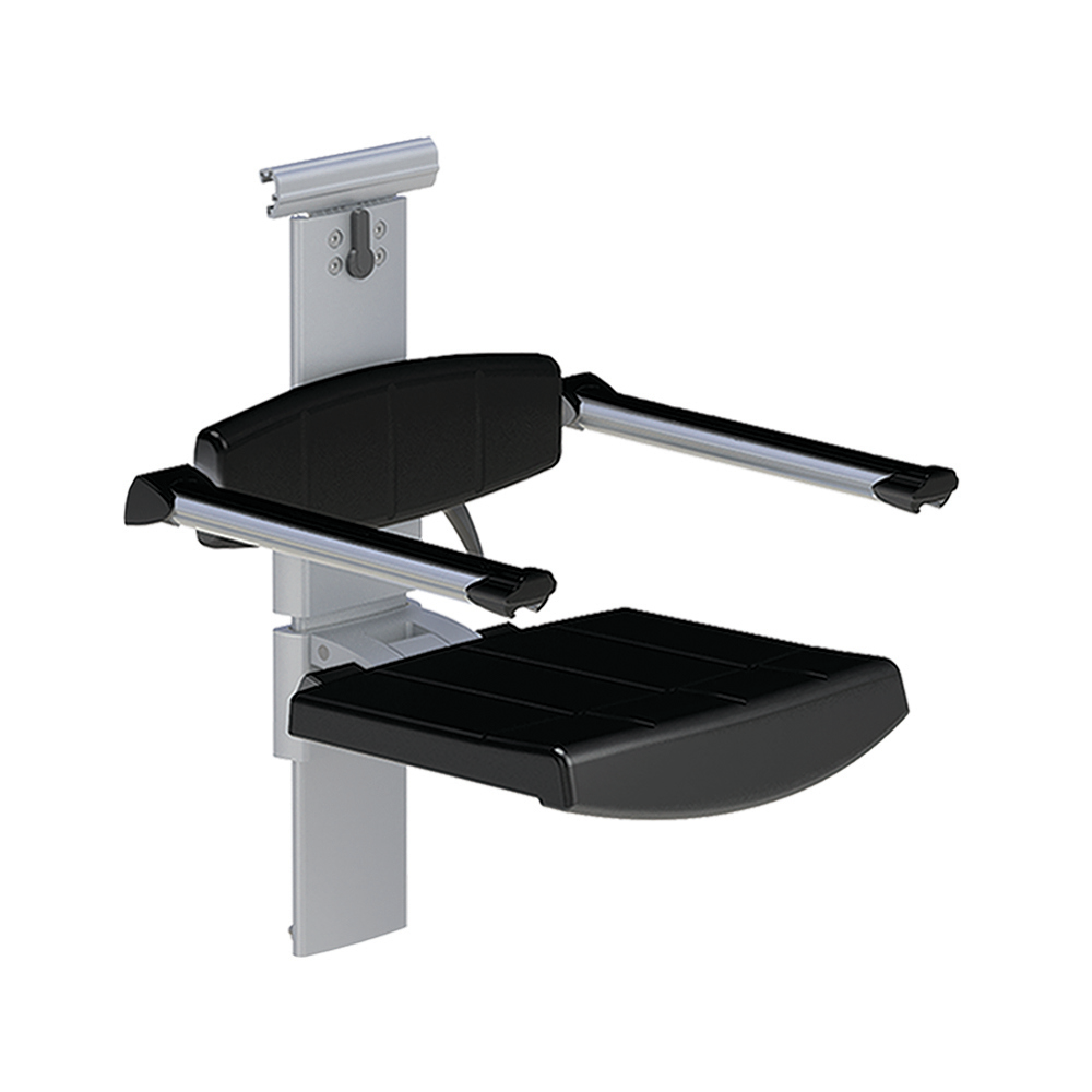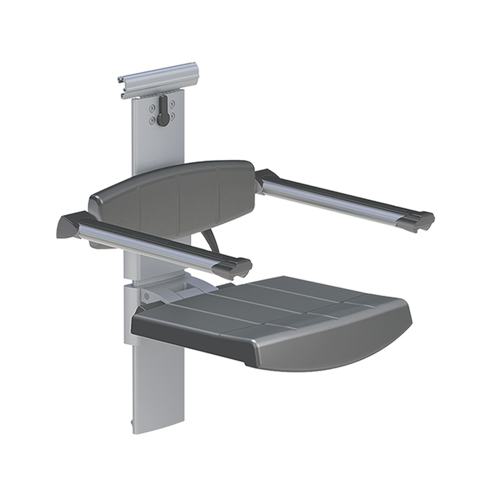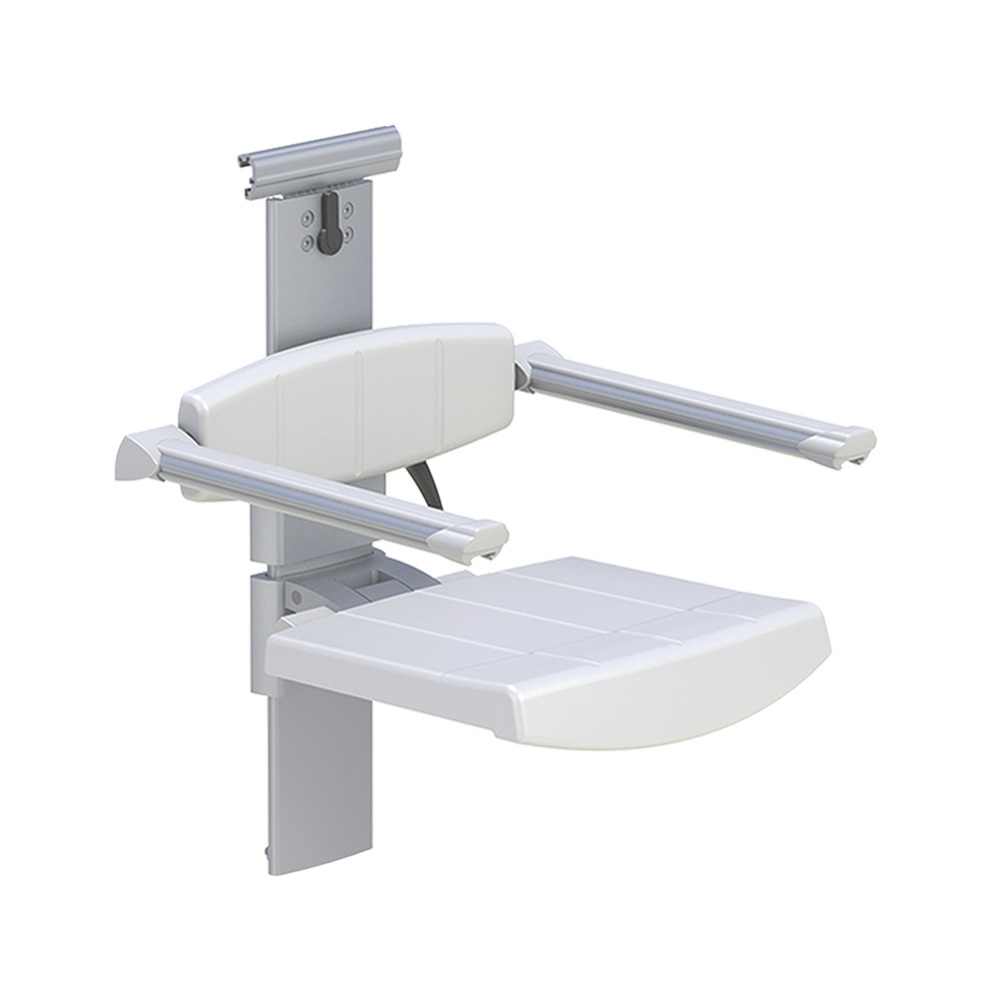 Wall mounted shower seat - with backrest & armrest, height adjustable