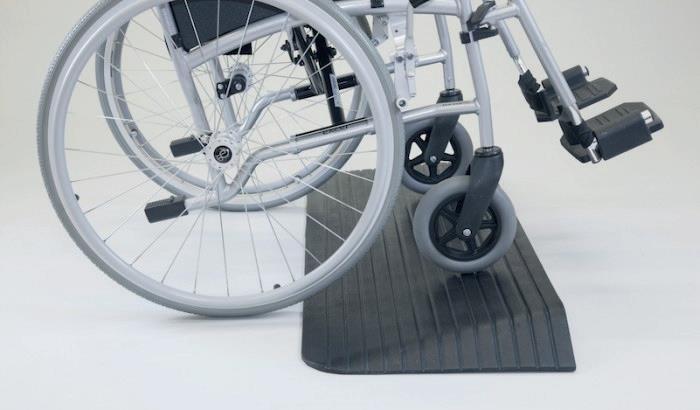 The rubber threshold ramp is perfect for passages with small height differences and can be used both outdoor and indoors. The ramp is made from 100 recyclable rubber and its ribbed surface makes it slip resistant. Fitting of the ramp does not require removal of existing thresholds or the use of special tools. The ramp is made in various sizes.