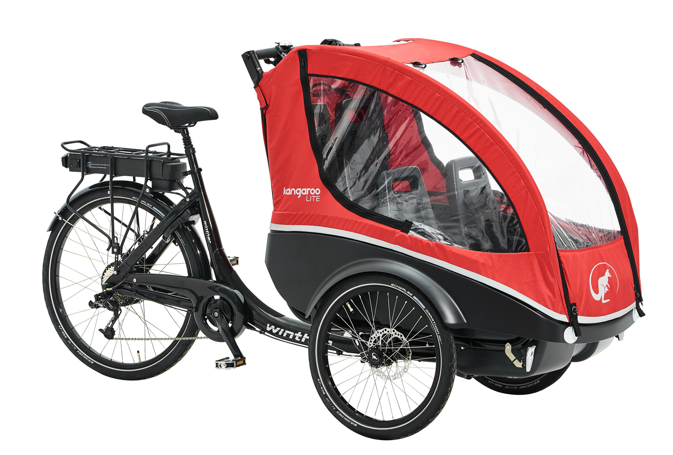 Kangaroo Lite 4 is a preferred cargo bike among child minders and nurseries. It is suitable for up to four children and has everything needed when taking the children out on a ride.