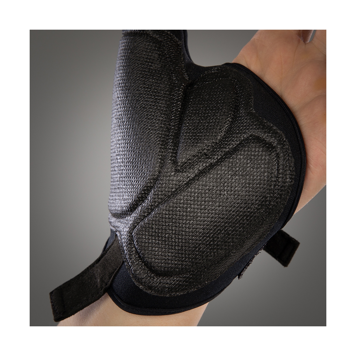 Has gel padding that is specially designed for wheelchair users. Gel pads reduce pressure on the ulnar nerve and carpal tunnel. Double seams for greater durability. Velcro strap with D-ring on the back of the hand