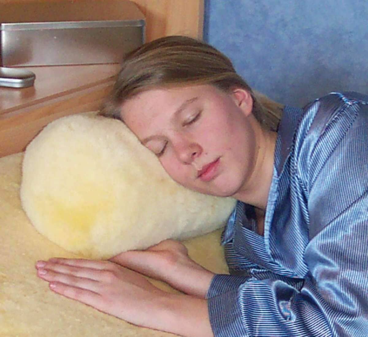 Rund nakke-/lændepude i medicinsk lammeskind