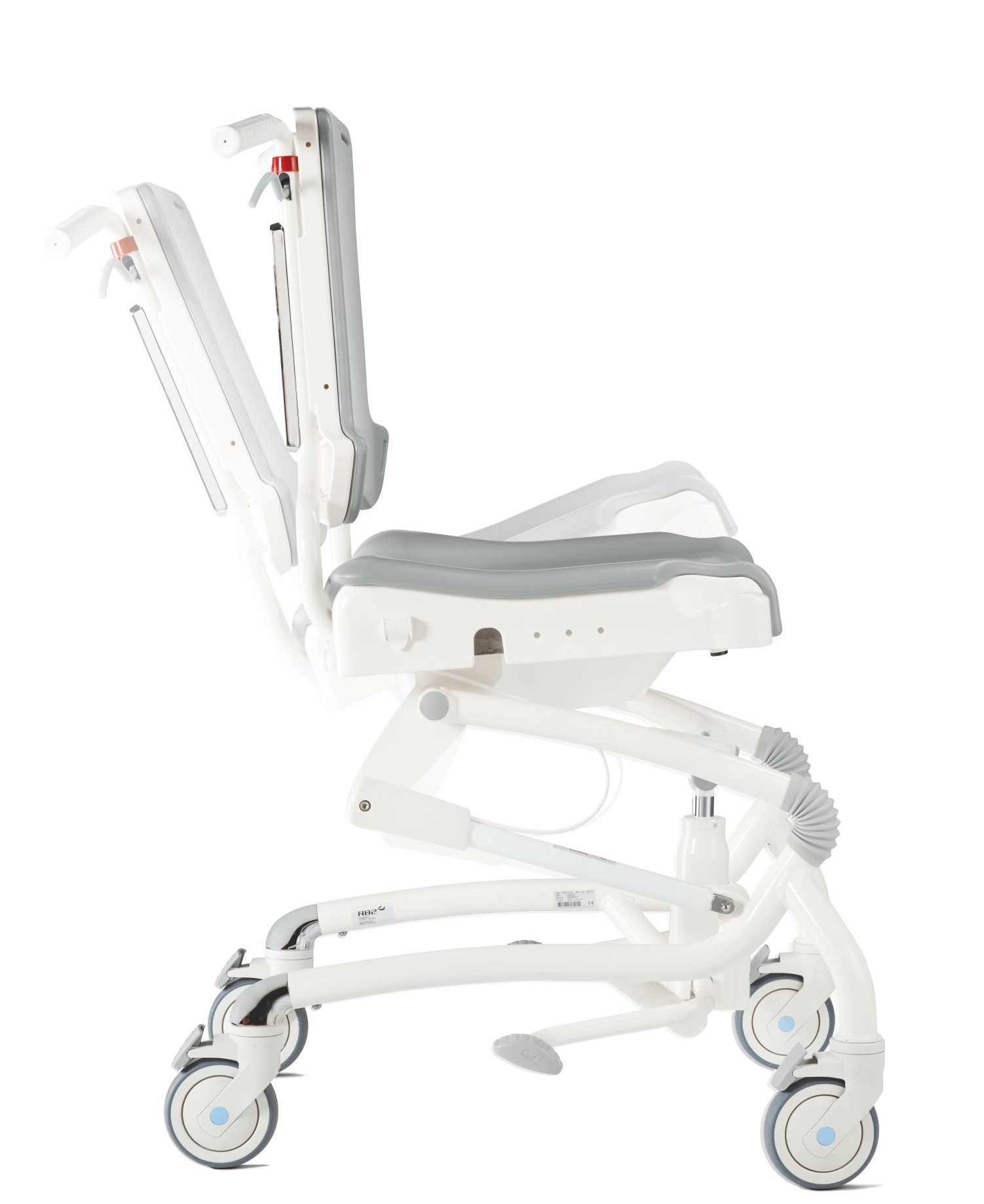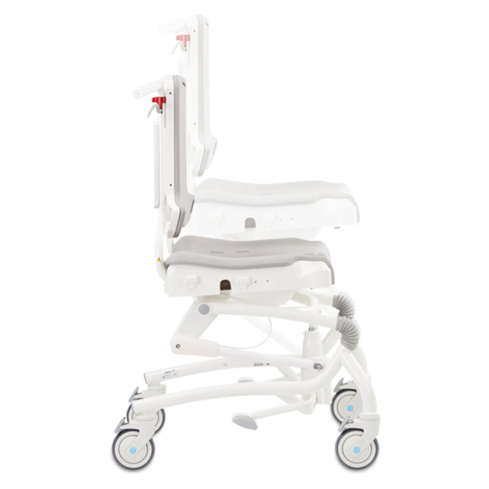 The Heron features multiple functionalities that improve both the user and caregiver experience. The seat is ergonomically correct, meaning it can be tilted and the back reclined without any disadvantage for the user. During recline, the anatomical pivot point at the axis of the hips is maintained. This provides the user more comfort when seate