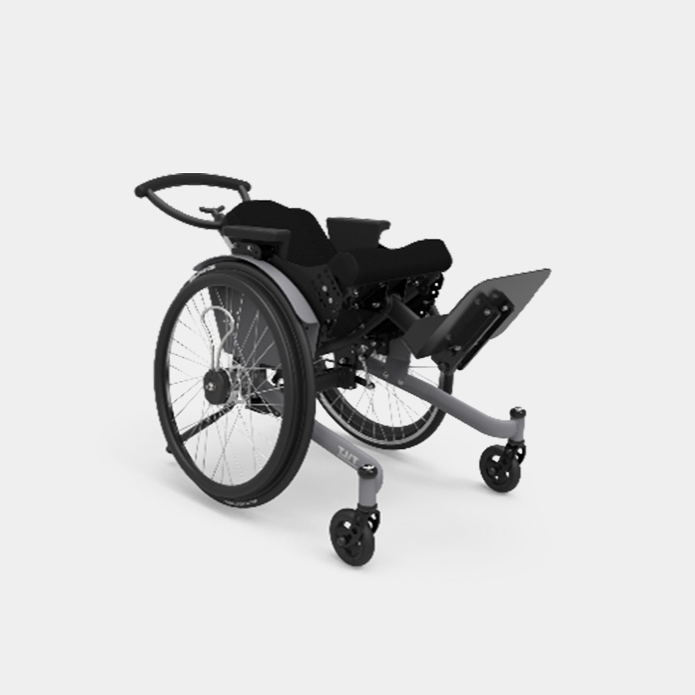 Kidevo Prime.t is a fixed-frame wheelchair that can follow the users growth from 2 years old to adulthood. The wheelchair has a tilting system that can tilt from 10 degrees forward to 50 degrees backwards.