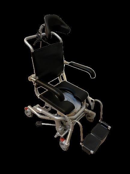 Toilet shower chair with hydraulics in hoist. Gas spring for tilt function.