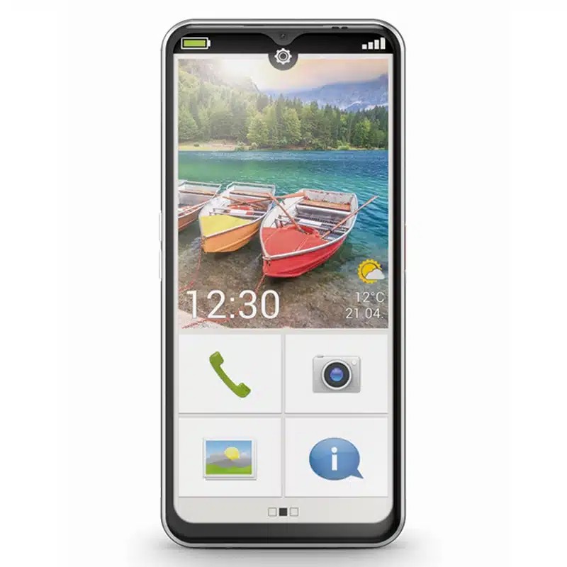 An elder-friendly smartphone that blends new technology with ease of use. Features 5G, fingerprint sensor, NFC, and facial recognition for security. Easy navigation with large icons and shortcuts to key functions. Includes a smartcover with function keys and an emergency call button for added safety.