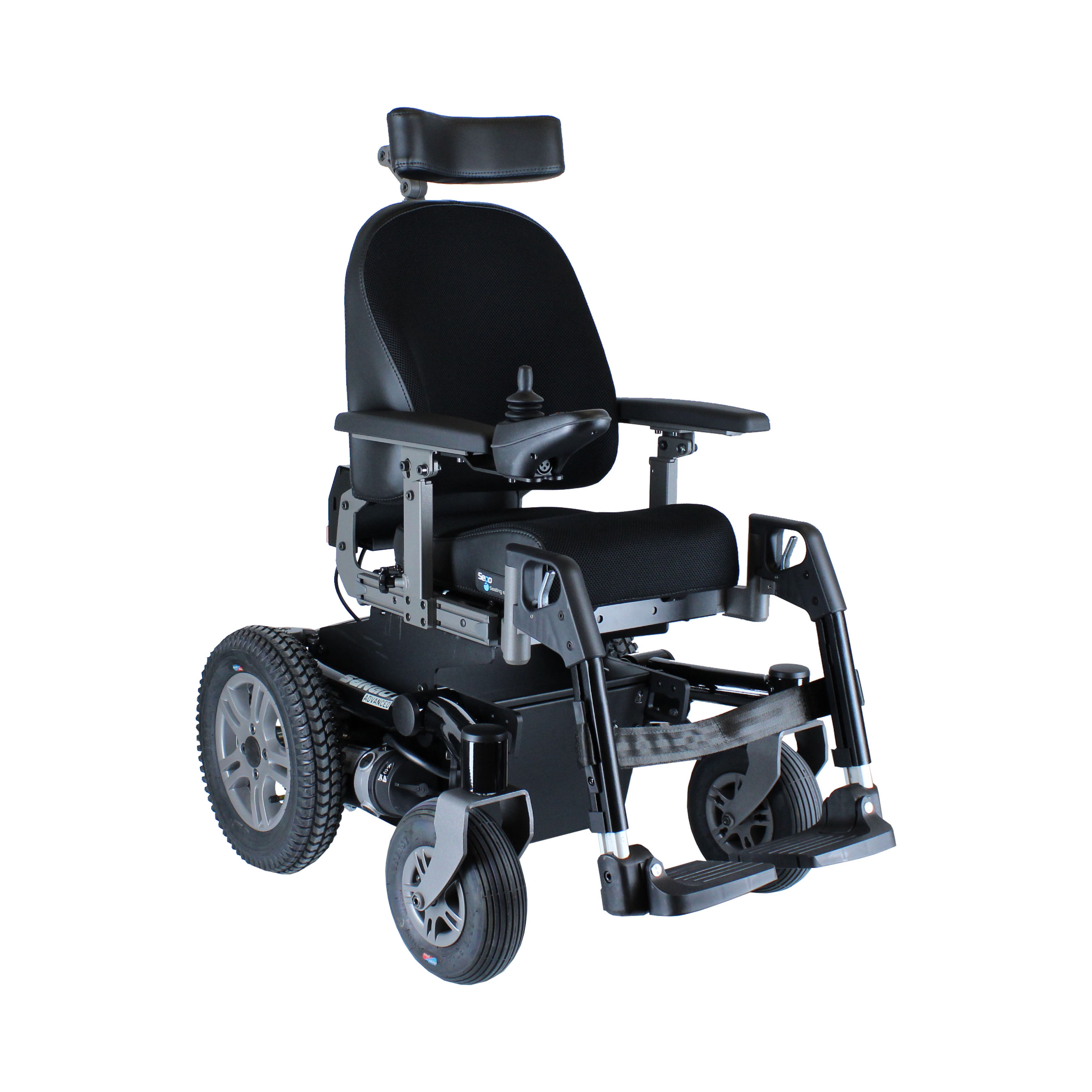 Childrens powered wheelchair with adjustable settings for driving patterns and comfort. Suitable for indoor and outdoor use. Seat height starts at 39 cm with optional negative tilt. Provides easy access to vehicles and high manoeuvrability. Powered seat height, backrest, tilt, and leg supports are available as optional features.