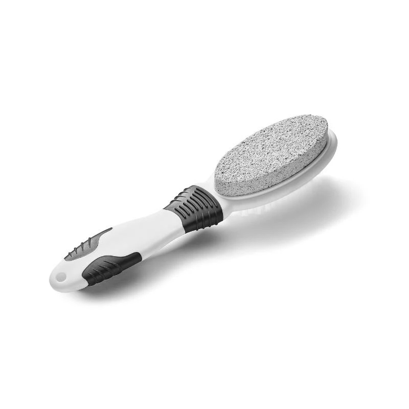 Achieve soft, well-groomed feet with this 2-in-1 pumice stone and brush. The gentle pumice removes calluses, while the brush cleanses and massages. The ergonomic, non-slip handle ensures a secure grip. Ideal for easy and thorough foot care at home.