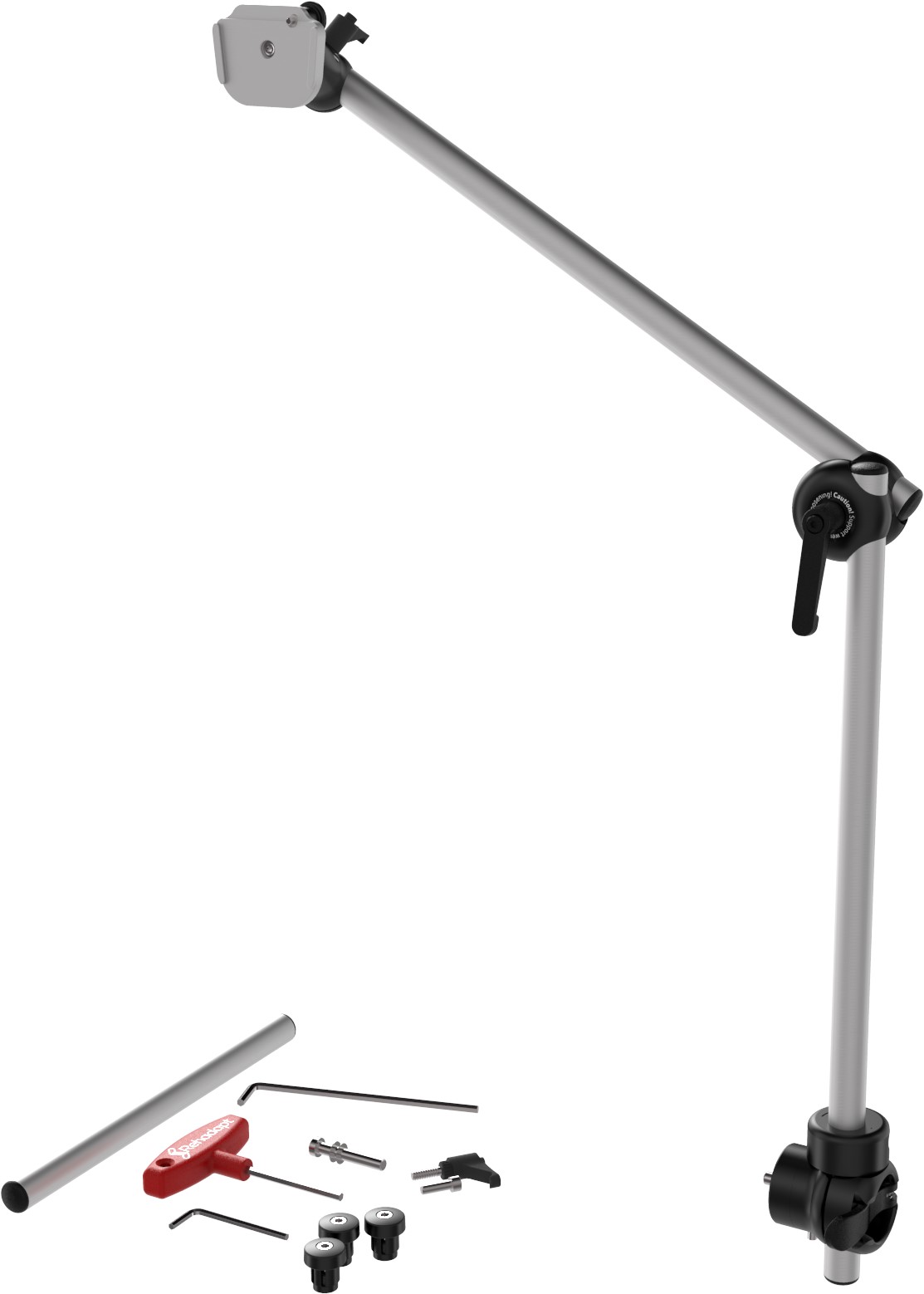 M3D dual-tube wheelchair mount with RotLok base and UDS-DC. Tube lengths: 500500mm. Includes an extra 300mm tube. Swivel function allows flexible positioning. Maximum load capacity: 4.0kg. Frame clamp not included.
