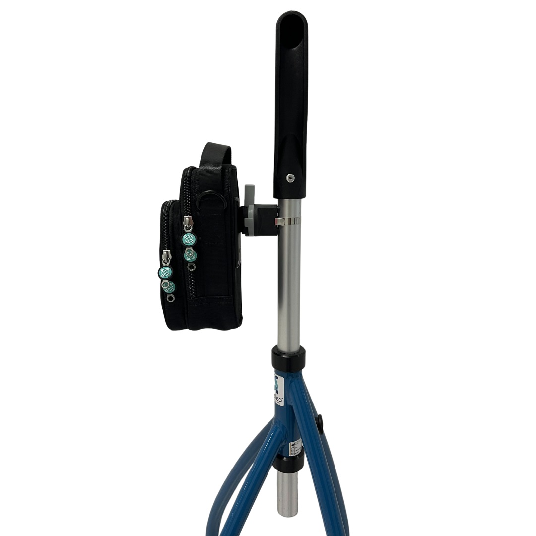 WheeBag is the practical, adjustable bag that clicks securely onto your Wheeleo, wheelchair, or other mobility aids, providing easy access to small personal items such as your phone, keys, or wallet. It is designed to sit discreetly and stably without restricting movement.