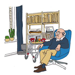 Jens Ole har fået betjeningsløsninger til lyset, og så har han fået en robotstøvsuger og en robotgulvvasker. Han har også fået en smarthøjttaler med skærm, og han synes nu, at det er lettere at finde god musik og nyhedsprogrammer, og så er skærmen også hyggelig at kigge på, når den fungerer som en billedramme med familiefotos.
