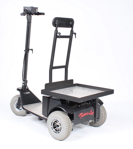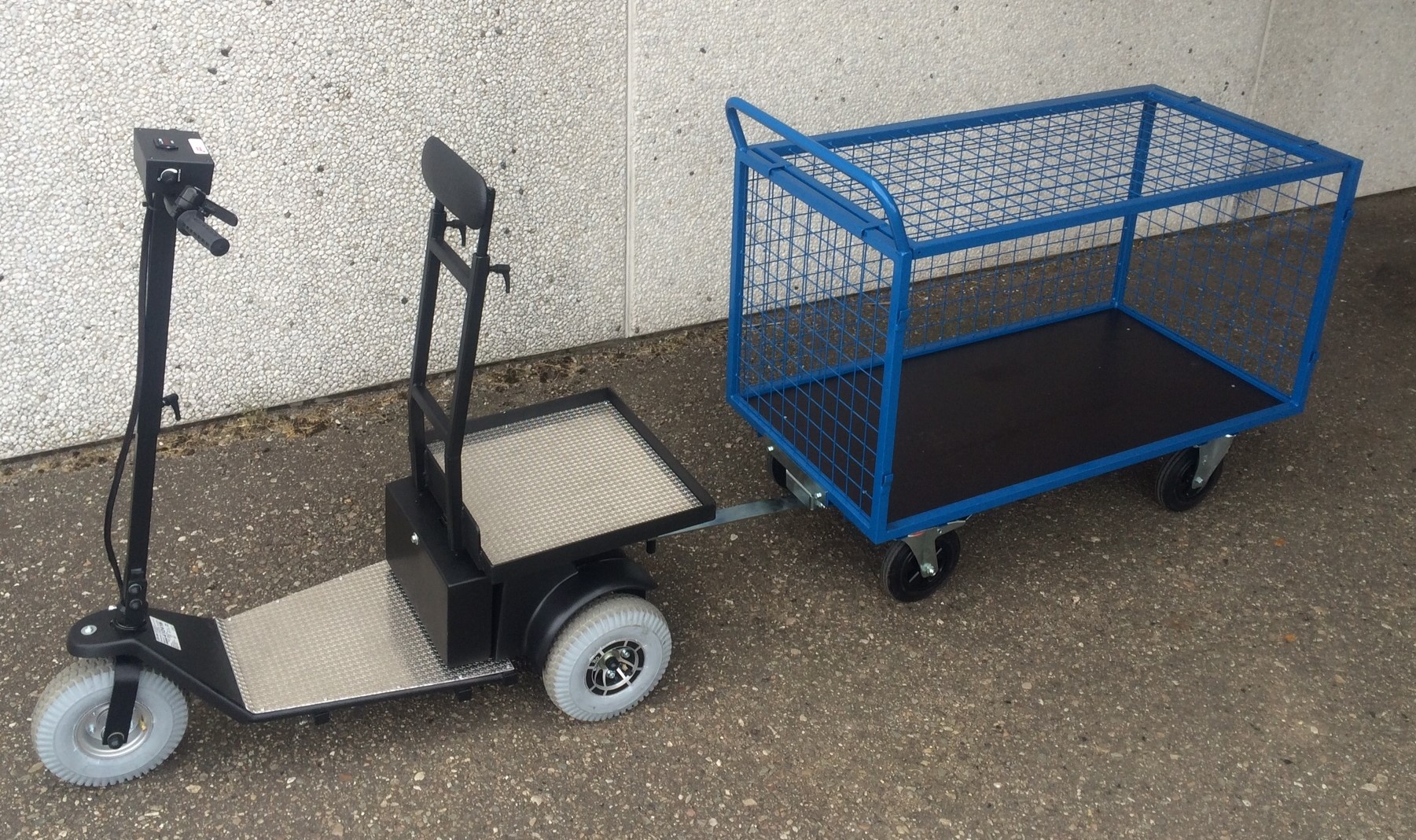 Velegnet til persontransport, siddende eller stående med lændestøtte. Benyttes på bl.a. sygehuse, haller og industri. Hurtig let transport. Punkterfri dæk, justerbar styr, sikkerhedsknap. Lavet med ekstra lad i bag og træk og plads til værktøj eller andet lettere gods. Lasteevne inkl. fører 125 kg. Fåes med ekstra længde på 10 cm.
