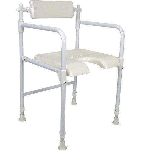 Badestol med fast ryg og armlæn, kan foldes sammen for nem transport og vejer blot 4 kilo. Badestolen er fremstilet i formstøbt plast med robuste ben i aluminium, som kan justeres således at højden på sædet kan indstilles til mellem 45-55 cm.