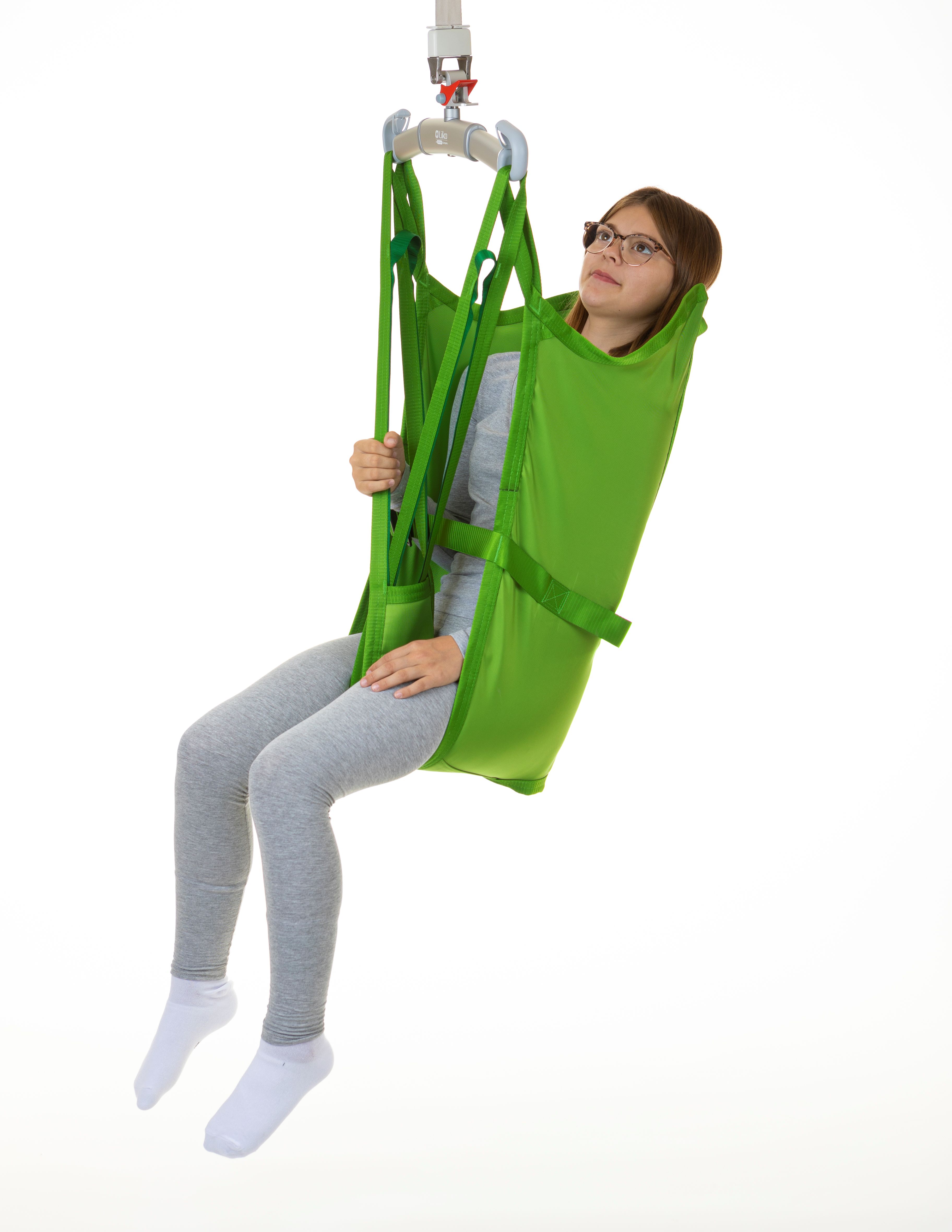Sejlet giver støtte i hele kroppens længde og anbefales til løft til/fra gulv. Siddestillingen er let tilbagelænet.