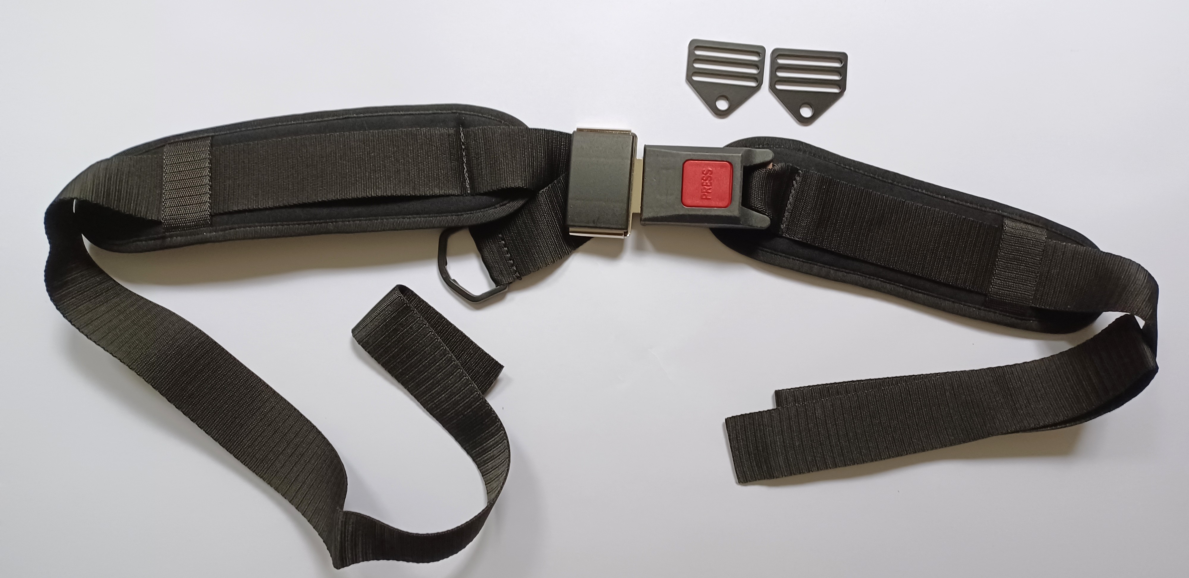 2-punkt hoftesele der yder komfort, bækkenstøtte og stabilitet. Kan justeres ved træk i en D-ring, væk fra brugerens midterlinie.