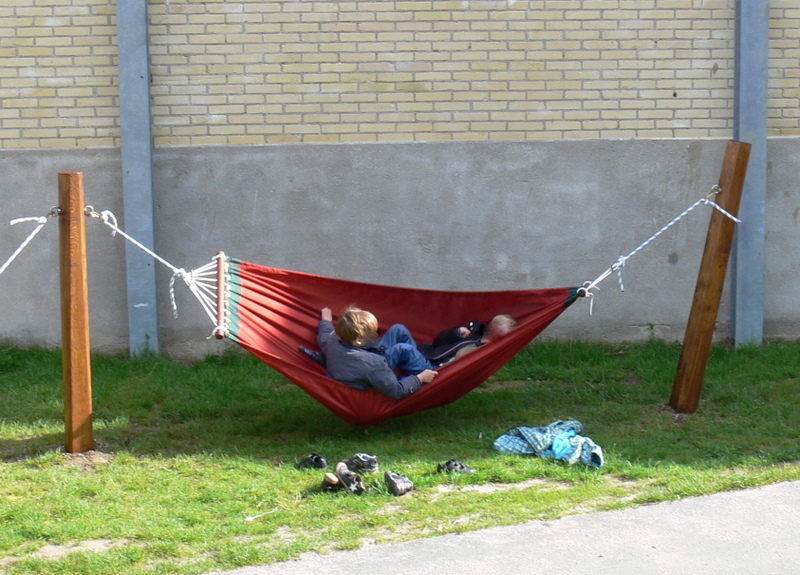Flad bund og høje sider gør køjen både komfortabel og sikker for flere personer. Racle vævet poliesternet er åndbart og nærmest uforgængeligt. 1,45 m bredt og 2,75m langt. Bæreevne minimum 500 kg. Børnehaver, parker, private haver, autisme og adhd. Sendes på anfordring direkte fra vores værksted. Kan vaskes med sæbe og spules med medium tryk.