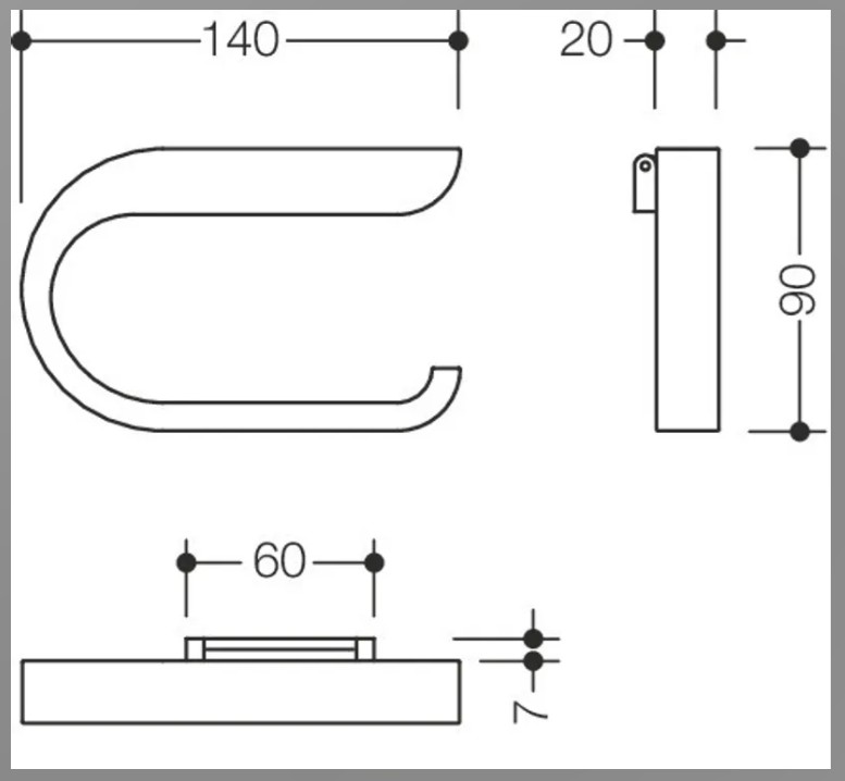 U-formet vægmonteret toiletpapirholder i polyamid. Bredde 140 mm, højde 90 mm, dybde 20 mm. Alternativ version med hængslet åbning til højre: 27 mm dybde. Farver: signalhvid (98) eller ren hvid (99). Skjult fastgørelse. Inkl. HEWI-monteringsmateriale.