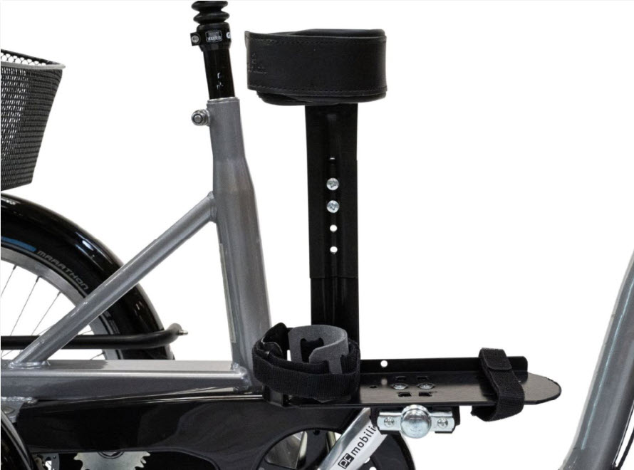 Fodstøtten er monteret med velcro, så benet holdes på plads på en behagelig måde.